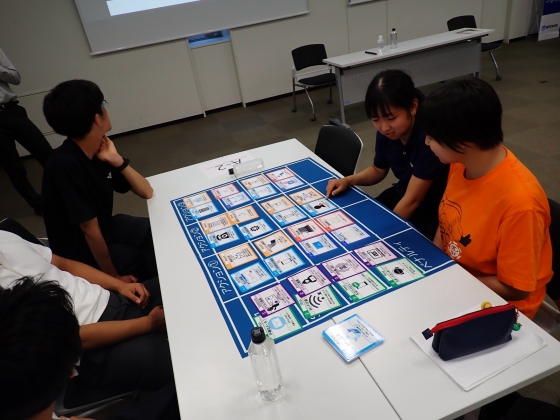 ・生徒たちは真剣な眼差しでカードを手に取り、仲間と意見を交わしながら次の一手を考えていた。